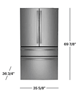 The GE Profile PGE29BYTFS French Door Refrigerator offers the perfect blend of smart technology, spacious design, and sleek stainless steel styling. At 36 inches wide, it provides generous storage capacity with flexible shelving, deep door bins, and a full-width drawer to keep everything organized. Engineered with advanced cooling systems, this refrigerator ensures consistent temperature and lasting freshness for all your groceries. With WiFi connectivity, you can control and monitor settings remotely, while its fingerprint-resistant finish keeps your kitchen looking pristine. https://www.bestbuy.com/product/ge-profile-28-7-cu-ft-4-door-french-door-smart-refrigerator-with-dual-dispense-autofill-pitcher-stainless-steel/J7645SL5T2