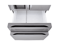 Grade A The LG LF25G8330S is a 25 cu. ft. French Door Refrigerator that offers large-capacity storage, smart cooling, and a sleek design. Equipped with Smart Cooling™ technology to maintain consistent temperatures and keep food fresh longer. Features a Dual Ice Maker that produces both cubed and crushed ice, with storage in both the door and freezer compartment. The Smart Inverter Compressor operates quietly and efficiently, automatically adjusting cooling performance as needed. Includes two humidity-controlled crispers, a full-width pantry drawer, and adjustable spill-proof shelves for flexible organization. The LED lighting provides bright, energy-efficient illumination throughout the interior. SmartThinQ® technology allows Wi-Fi connectivity for remote monitoring and control via the LG app. The stainless steel finish resists fingerprints and smudges, keeping the exterior looking clean and polished. Energy Star® Certified for efficient performance. Dimensions: 35.75” W × 70.25” H × 31.75” D Electrical: 115V / 60Hz / 15A fergusonhome.com/product/summary/2023886?uid=4837599&jmtest=gg-gbav2_4837599&gclsrc=aw.ds&gad_source=1&gad_campaignid=20990009726&gclid=Cj0KCQjw9JLHBhC-ARIsAK4Phcr_Dp_JzKbrpCDdmT_yhTuRnGLmZXuLsoIwuDYLuSKpeI43WkH87LcaAokKEALw_wcB4