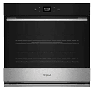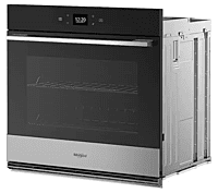 grade a The Whirlpool WOES5930LZ is a 30-inch built-in single electric wall oven with a 5.0 cu. ft. capacity, designed to deliver consistent cooking results with everyday convenience. It features true convection, which uses a fan-assisted system to circulate hot air evenly for uniform baking and roasting. This model includes a built-in Air Fry mode, allowing you to prepare crispy foods directly in the oven without additional appliances. Frozen Bake™ Technology lets you cook frozen foods without preheating, saving time and simplifying meal preparation. The oven is equipped with electronic touch controls for easy operation, a self-cleaning system for low-maintenance upkeep, and a fingerprint-resistant stainless steel finish that keeps the exterior looking clean and polished.