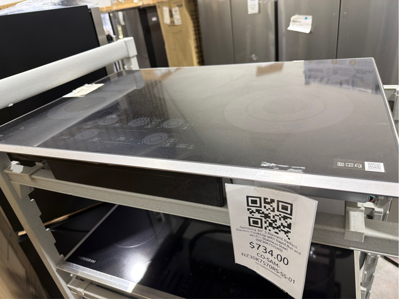 Grade A It has imperceptible scratches. Samsung NZ30K7570RS 30-inch Radiant Electric Cooktop combines precision control and modern technology. It features five radiant heating elements, including a 3,000W Rapid Boil dual-ring burner for fast and even heat. Wi-Fi connectivity allows remote monitoring and control via the SmartThings App. Magnetic knob controls provide precise manual adjustment and can be easily removed for cleaning. The hot surface indicator and child safety lock enhance kitchen safety. The stainless-steel trim and ceramic glass surface add a sleek, modern appearance. Cutout dimensions: W 28-1/2” × D 19-5/8”. Power: 240V Electric. https://www.homedepot.com/p/Samsung-30-in-5-Burner-Element-Radiant-Smooth-Top-Electric-Cooktop-in-Stainless-Steel-with-Rapid-Boil-and-Wi-Fi-NZ30K7570RS/300523061?g_store=&source=shoppingads&locale=en-US&pla&utm_source=google&utm_medium=vantage&utm_campaign=50482&utm_content=52748&mtc=SHOPPING-RM-RMP-GGL-D29A-029_015_COOKING-NA-SAMSUNG-NA-PMAX-NA-NA-MK893719001-50482-NBR-37-NA-VNT-FY25Q1Q4_Samsung_D29A_RM_AON_RANGE&cm_mmc=SHOPPING-RM-RMP-GGL-D29A-029_015_COOKING-NA-SAMSUNG-NA-PMAX-NA-NA-MK893719001-50482-NBR-37-NA-VNT-FY25Q1Q4_Samsung_D29A_RM_AON_RANGE-22184920525--&gclsrc=aw.ds&gad_source=1&gad_campaignid=22184922229&gbraid=0AAAAAolLu9_cWqDbAIOZ0AbX6XFY3DYk7&gclid=Cj0KCQjw9obIBhCAARIsAGHm1mRGhw-F8PEeV5Id-Jhnbp3Ssm7KVZrT7CSYx_ZuF-0O5P9lZTK1ZPAaAiH7EALw_wcB#overlay