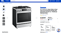 Grade B There are some very small, minor scratches.The LG LSDL6336F is a 6.3 cu. ft. Smart Slide-In Dual Fuel Range, designed for those who want the precision of gas cooking with the accuracy of an electric convection oven. Features five sealed burners, including an UltraHeat™ 22,000 BTU dual burner for rapid boiling and searing. The spacious ProBake® Convection oven ensures even heat distribution for perfect baking and roasting. Built-in Air Fry mode delivers crispy results without oil. The EasyClean® + Self Clean system allows quick maintenance with low heat and steam, or deep clean cycles when needed. Wi-Fi enabled with ThinQ® smart app, compatible with Alexa and Google Assistant for remote control and monitoring. The PrintProof™ stainless steel finish resists smudges and fingerprints, maintaining a professional kitchen look. Includes SmoothTouch™ glass controls, LED display, and digital temperature accuracy. Fuel type: Gas cooktop / Electric oven Electrical: 240V / 40A Dimensions: 29.9” W × 37.2” H × 29.3” D ⚠️ Condition Note: Fully functional — all burners, oven, and features work perfectly. There is a small cosmetic dent on the side panel that doesn’t affect performance. https://www.bestbuy.com/product/lg-6-3-cu-ft-smart-slide-in-dual-fuel-true-convection-range-with-easyclean-and-air-fry-printproof-stainless-steel/J7G5653F3X/sku/6506094?extStoreId=&utm_source=feed&ref=212&loc=SaleEvent&gclsrc=aw.ds&gad_source=1&gad_campaignid=21838893979&gbraid=0AAAAAD-ORIg81K9wQXkFyIMzGhbQJToxM&gclid=Cj0KCQjw9JLHBhC-ARIsAK4PhcoDMhRuaxO_QX3fJPVcTbI6AbiSdsX8hzE5wqqOkaVVrEl_BXgTPTMaAqqjEALw_wcB