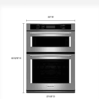 GRADE A NEW IN BOX The KitchenAid KOCE500ESS is a 30-inch combination electric wall oven that integrates a powerful microwave oven with a traditional electric convection oven in one sleek built-in unit. This design offers maximum cooking flexibility while saving valuable kitchen space. The upper microwave oven provides fast and efficient cooking, reheating, and defrosting, while the lower electric oven delivers consistent baking and roasting performance with Even-Heat™ True Convection technology. Multiple cooking modes allow precise control for a wide variety of recipes. Finished in classic stainless steel, the KOCE500ESS combines modern aesthetics with dependable KitchenAid performance, making it an excellent choice for both everyday cooking and entertaining.