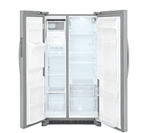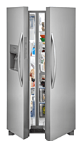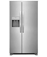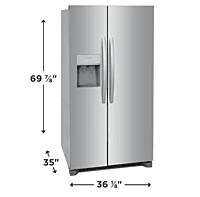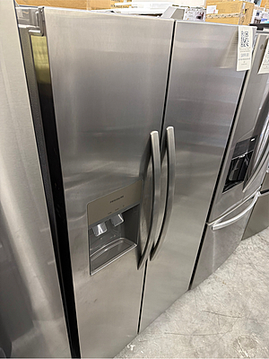 Grade B There are small stains. The Frigidaire FRSS2623AS is a 25.6 cu. ft. Side-by-Side Refrigerator designed for reliability, capacity, and modern convenience. Features the EvenTemp™ Cooling System, which maintains a uniform temperature throughout the fridge and freezer to prevent warm spots and freezer burn. Includes a factory-installed ice maker with easy-access dispenser for cubed or crushed ice. Adjustable Glass Shelves and Gallon Door Bins maximize storage flexibility for large items. LED Lighting provides bright, energy-efficient illumination in every section. PurePour™ Water Filtration System reduces impurities for cleaner, better-tasting water and ice. ENERGY STAR® Certified for efficient operation and lower utility costs. Fingerprint-resistant Stainless Steel finish keeps the exterior looking clean and modern. Capacity: 25.6 cu. ft. (16.6 refrigerator / 9.0 freezer) Dimensions: H 69.88” × W 36.13” × D 35.0” Electrical: 115V / 60Hz / 15A https://www.lowes.com/pd/Frigidaire-25-6-cu-ft-Side-by-Side-Refrigerator-with-Ice-Maker-Stainless-Steel-ENERGY-STAR/5013990503