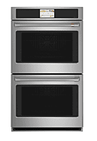 GRADE A The Café CTD70DP2NS1 is a 30-inch built-in double electric wall oven offering a combined 7.0 cu. ft. total capacity, ideal for multi-dish cooking and large meals. Both ovens feature True European Convection, ensuring even heat distribution for consistent baking and roasting results. This model includes Wi-Fi connectivity, allowing remote monitoring and control through the SmartHQ app. The intuitive touch control panel with LCD display provides a modern, streamlined user experience. Multiple cooking modes support baking, broiling, roasting, and convection cooking. Designed with a stainless steel finish, the CTD70DP2NS1 delivers a professional appearance while integrating seamlessly into contemporary kitchen cabinetry.
