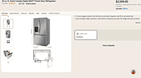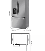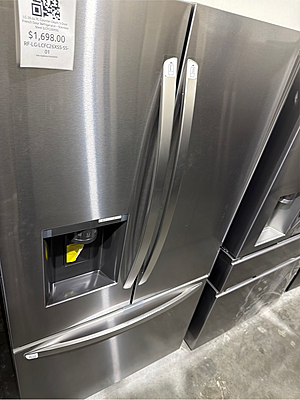 Grade A The LG LCFC26XSS is a 26 cu. ft. Counter-Depth 3-Door French Door Refrigerator, offering a sleek built-in look and efficient storage design. Powered by Smart Inverter Compressor for reliable, quiet, and energy-efficient cooling. Features Multi-Air Flow Cooling that evenly distributes cold air to maintain consistent temperatures throughout the fridge. Equipped with Dual Evaporators to help keep produce fresh and prevent odor transfer between compartments. Interior includes two humidity-controlled crispers, a full-width pantry drawer, and adjustable spill-proof glass shelves. The Slim SpacePlus® Ice System is built into the door, providing ice without taking up shelf space. Bright LED lighting ensures clear visibility inside every compartment. Wi-Fi enabled for remote monitoring and control via the LG ThinQ® app, allowing users to adjust settings or receive alerts. The PrintProof™ Stainless Steel finish resists smudges and fingerprints, maintaining a clean, modern appearance. Energy Star® Certified for efficient operation. Capacity: 26 cu. ft. (17.4 fridge / 8.4 freezer) Dimensions: 35.75” W × 69.75” H × 31.25” D Electrical: 115V / 60Hz / 15A https://www.lg.com/us/refrigerators/lg-lcfc26xss-french-3-door-refrigerator